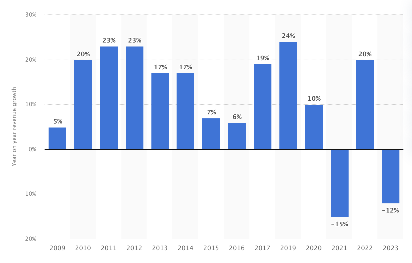 Figure 1: Vans’ annual revenue growth (2009-2023)
